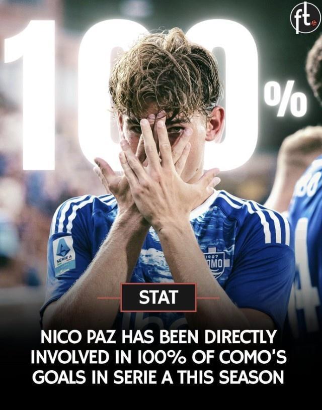 9月27日讯 意甲第5轮科莫暂1-0领先克雷莫内塞,21岁小将尼科-帕斯帮助球队首开纪录。这是帕斯本赛季意甲第3球,阿根廷人本赛季意甲已经贡献3球3助攻。科莫本赛季目前在意甲一共打进6球,尼科-帕斯参与了全部的进球。