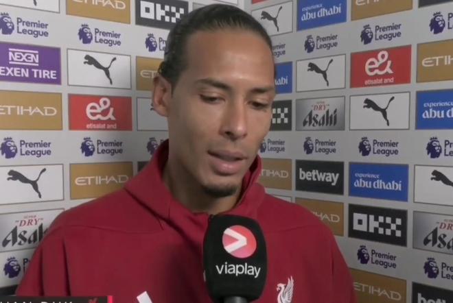 本赛季英超第11轮,利物浦客场0-3输给了曼城。利物浦队长范戴克赛后接受了viaplay的采访。我们直接进入正题吧。今天比赛中有几个关键的判罚。先从那个点球说起,你当时怎么看?这个我不会去评论的,你也知道,一旦说出来,明天新闻全是这个。我只能说,今天的判罚我们都得去面对,包括曼城在内。确实,有些比赛的判罚可以彻底改变比赛的走向。但事实是,当我们走下场时,比分是0-3,我们输了,这显然让人失望。我们必须像往常一样团结在一起,继续努力。前两场比赛我们踢得很好,我觉得那两场的表现能给我们带来很多信心和基础,我们也试图延续这种势头。但你必须意识到,对手是曼城,他们能让任何球队陷入困难,尤其是我们。所以,就这样吧。那我就礼貌地忽略你刚才的回答(笑)。我们来说第二个判罚。你那记头球破门被判无效,据说是因为罗伯逊越位。你怎么看?我唯一能说的就是,我认为那是个进球。我得说,我也讨厌那条规则。罗伯逊只是低头闪避,我不认为多纳鲁马能扑到那球。所以我倾向于同意你的看法。但这确实是场上一个非常关键的判罚,对吧?是的,非常关键的一个判罚。这一周你们踢了三场比赛,先后战胜了阿斯顿维拉和皇家马德里。那今天这场你怎么看?如果你让我发表看法,我会说曼城今天确实是更出色的一方。我同意。我觉得所有踢过球或看过很多球的人都明白,比赛中的势头是会变化的。一些判罚可能会让你获得更高的势头,也可能让对手产生怀疑。我认为如果有些情况不同,这场比赛可能会是另一种结果。但事实是,它没有那样发展。曼城今天理所当然地赢下了比赛,这令人失望。我们必须继续前进。听起来可能有点老套,但我们必须保持健康。接下来大家都要回国家队踢比赛,而当我们回到俱乐部时,将迎来一段非常密集的赛程。我们需要每个人都保持最佳状态和最佳状态的发挥。这就是我们的目标,也是我们现在必须做到的。【上咪咕独家看英超