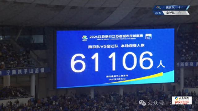 (来源:荔枝新闻)转自:荔枝新闻业余联赛,单场61106名现场观众。这不是FM(“足球经理”游戏)里随手打出的数字,也不是什么“地球德比”的夸张宣传。就在上周,南京奥体中心体育场,第13轮江苏省城市足球联赛(简称 “苏超”),南京队对阵宿迁队的比赛,看台上密密麻麻坐满了六万一千一百零六名球迷。