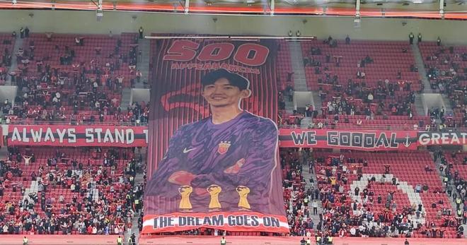 北京时间11月25日,亚冠精英联赛,上海海港主场对阵FC首尔。赛前,海港球迷在东看台打出巨型TIFO。TIFO上是球队主力门将颜骏凌的形象,有数字“500”,是为了纪念颜骏凌代表海港在各项正式比赛里出战500场。值得注意的是,虽然颜骏凌代表海港赢得了四座中超冠军奖杯,但TIFO上只画上了前三座。这是因为颜骏凌的500场是在11月4日海港客场对武里南联的比赛里完成的,随后他才在大连客场随队赢得了第四个中超冠军。